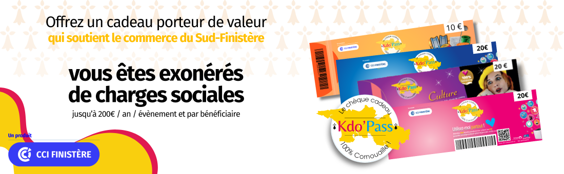 Kdo’Pass est le 1er chèque cadeau dédié aux commerces de Cornouaille. Lancé en 2010, il rassemble aujourd’hui :