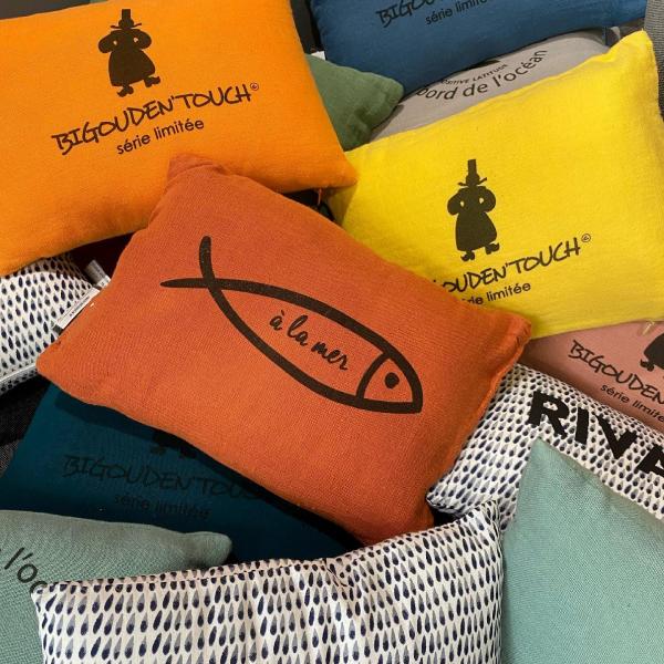 Boutique déco de la masion. Objets de créateurs : Jardin d'Ulysse, luminaires : Jielde, Fermob, verrerie Leonardo, Espace Sylvie Thiriez linge de maison, designers Guild, Le Jaquard français, créations exclusives "Bigouden Touch"