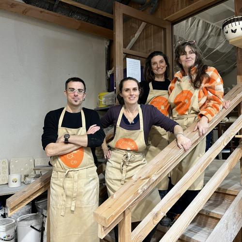 Atelier de fabrication des faïences Moineaux & Co, cours et stages de céramique avec un espace boutique. Location de matériel (tours de potiers et fours), service de cuissons dans nos fours, accueil d’artistes céramistes en résidence.